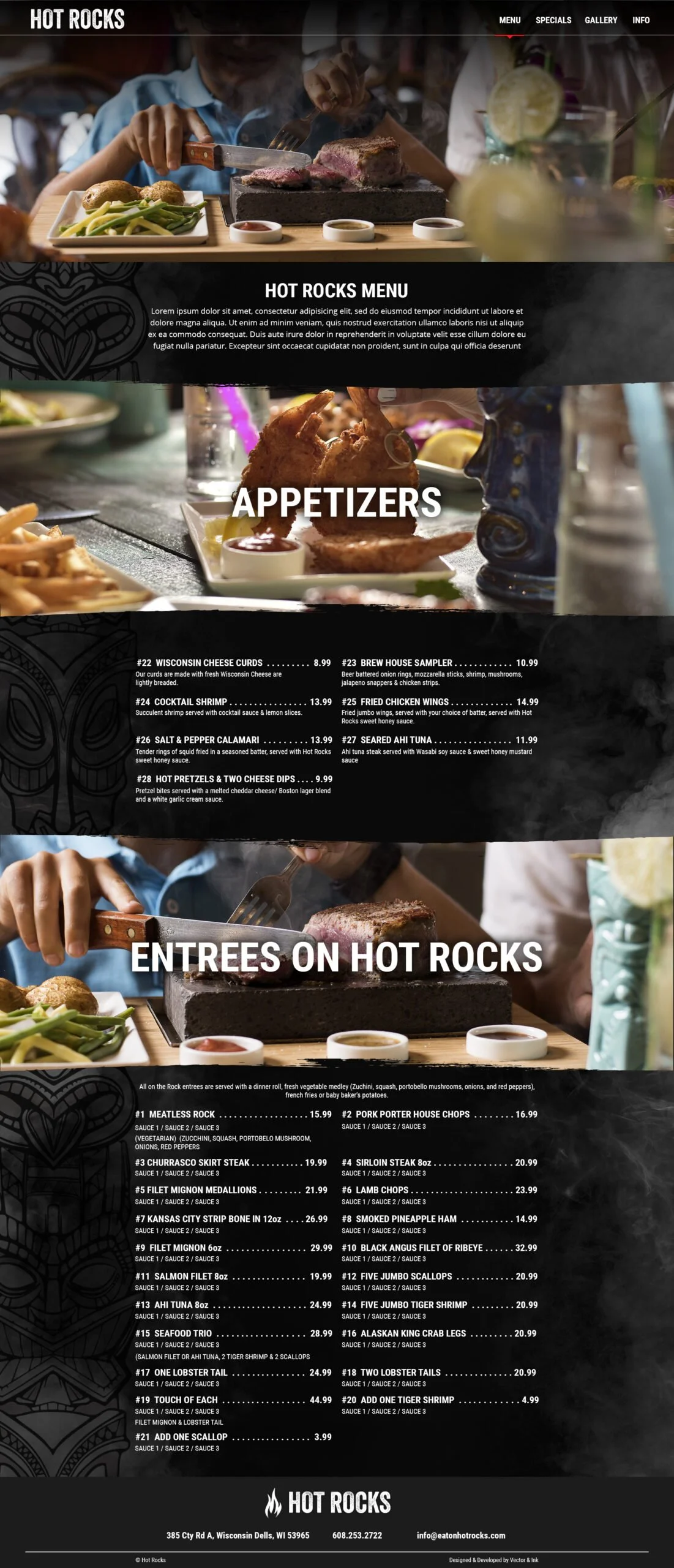 Hot Rocks is more than a restaurant. It’s a full immersive food experience. Introducing lava rock cooking to the Wisconsin Dells added a whole new challenge to creating the website for Hot Rocks.